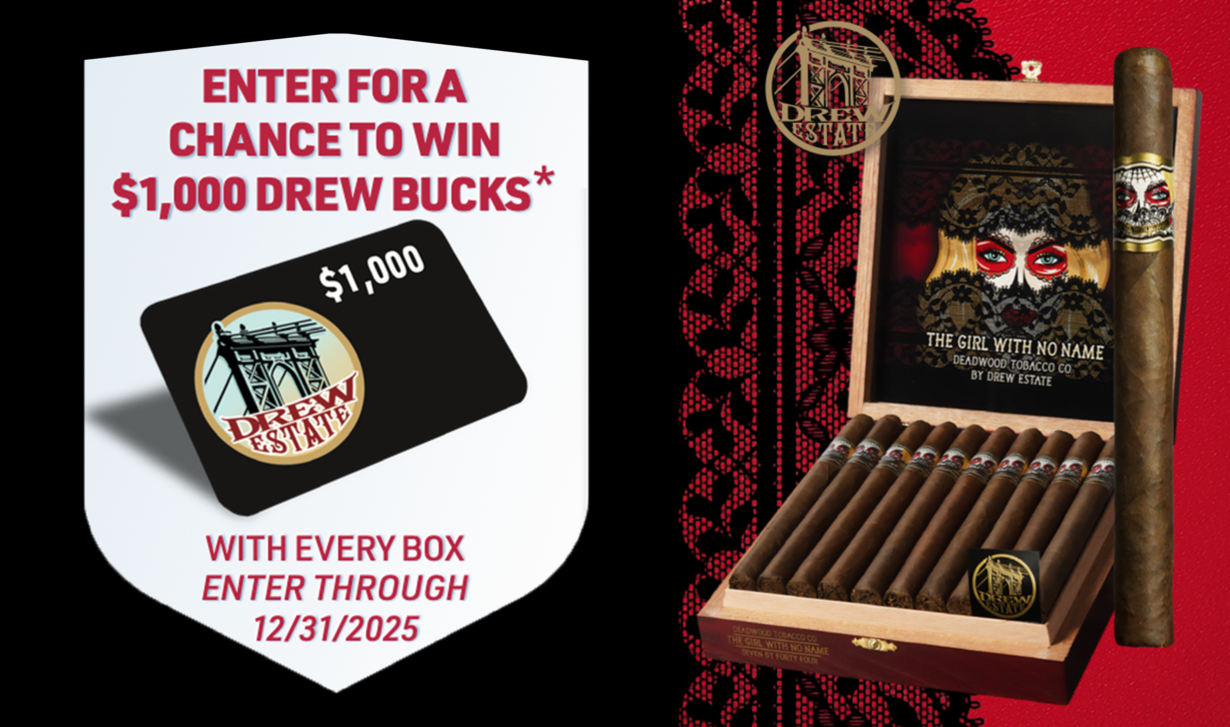 The purchase of any Drew Estate Deadwood boxes ordered through 12/31/25 earns you a chance to win!